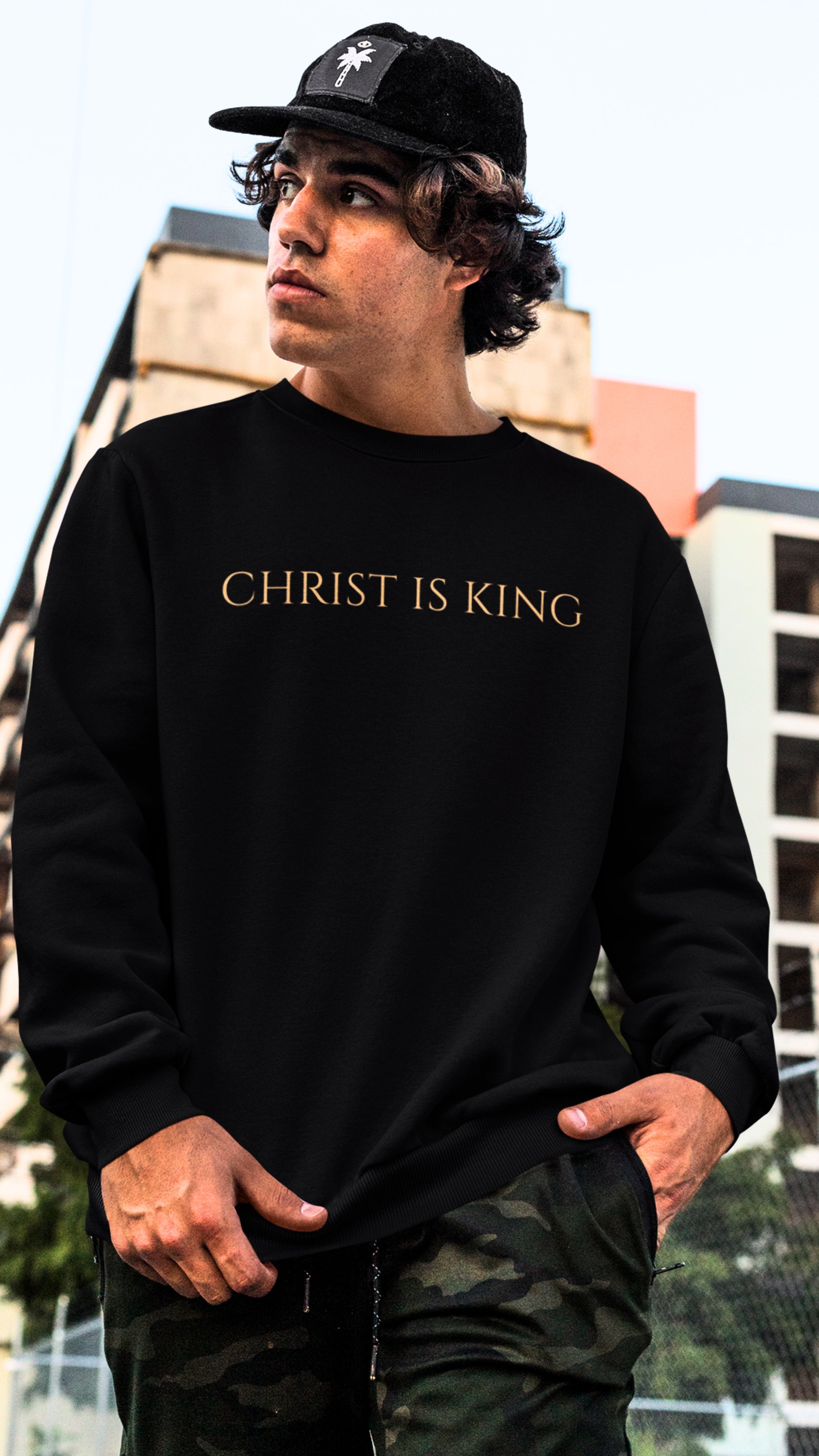 Goldener Schriftzug, königliches Wappen, tiefes Schwarz — ein Premium Sweatshirt, das Würde ausstrahlt. Für Soldaten Gottes. Für Loyalität. Für Jesus.